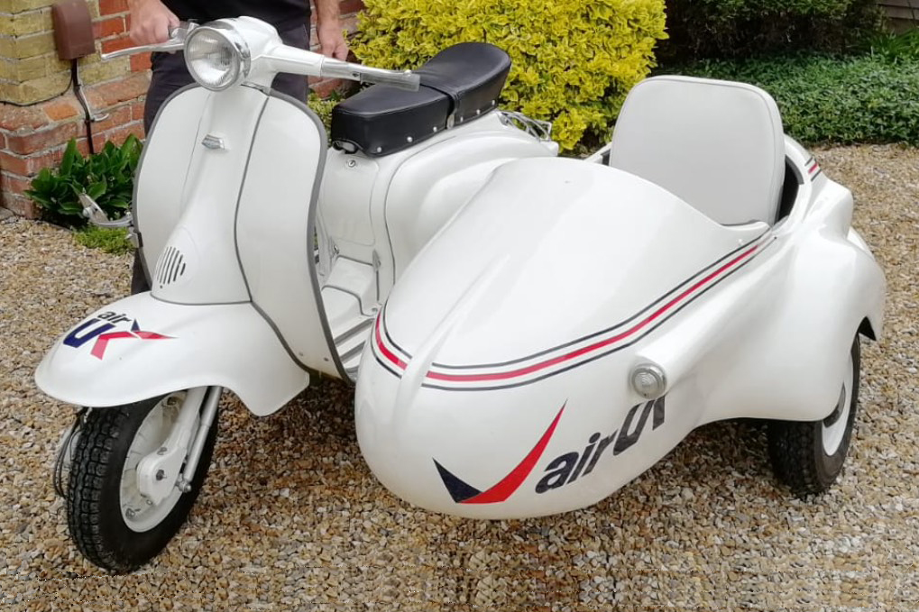 This Lambretta scooter and the Bambini Watson sidecar is one of a pair that the engineering department used in Jersey, they go back to BUA days and we have a photo of one of them in BUA colours taken in 1968.